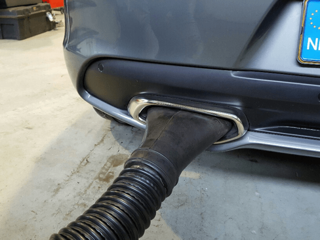 The principle of this DSE emission unit is based on a gas-tight connection with the exhaust of the passenger car. To achieve gas-tight connection we use a