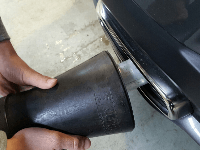 extremely flexible funnel with one or two frontal openings depending on the exhaust of the vehicle. For cars with double pipes or with oval exhaust pipes we can deliver a special funnel.
